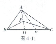 18.证明:如图4 - 11,连接AP并延长交BC于点D,作∠CAD的平分线AE,交BC于点E,