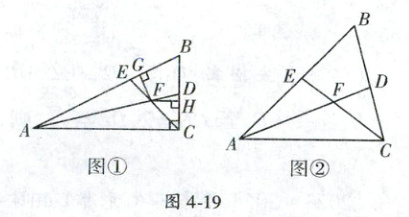 19. (2023秋·黄冈期末)如图①,在△ABC中,∠ACB是直角,∠B = 60°,AD,CE分别是∠BAC,∠BCA的平分线,AD,CE相交于点F,且FG⊥AB于G,FH⊥BC于H.
