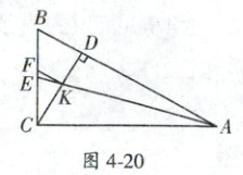 20. (大连市数学竞赛)如图4-20,在Rt△ABC中,∠ACB = 90°,CD⊥AB于点D,AE平分∠BAC,交CD于点K,交BC于点E,F是BE上的一点,且BF = CE,求证:FK//AB.