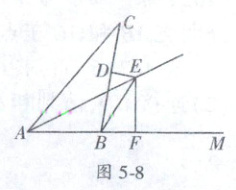 14.45° 提示:如图5 - 11,过点E分别作EF⊥AC于点F,EG⊥AB于点G,EM⊥BC于点M。可知EG = EM = EF,