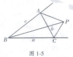 15. (浙江自主招生) 如图 1 - 5, 设 $ P $ 为 $ \triangle ABC $ 外一点, 点 $ P $ 在边 $ AC $ 之外, 在 $ \angle B $ 之内. $ S_{\triangle PBC}:S_{\triangle PCA}:S_{\triangle PAB} = 4:2:3 $. 又知 $ \triangle ABC $ 三边 $ a,b,c $ 上的高为 $ h_a = 3,h_b = 5,h_c = 6 $, 求点 $ P $ 到三边的距离之和是多少.