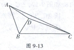 14. (2023 秋·北京月考)如图 9 - 13,$ \triangle ABC $ 中,$ BD $ 平分 $ \angle ABC $,$ AD $ 垂直于 $ BD $,$ \triangle BCD $ 的面积为 45,$ \triangle ADC $ 的面积为 20,则 $ \triangle ABD $ 的面积等于