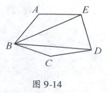 15. 如图 9 - 14,各边都相等的五边形 $ ABCDE $ 中,$ \angle ABC = 2\angle DBE $,求 $ \angle ABC $ 的度数.