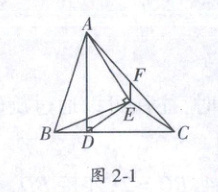 2. (福建泉州市永春县自主招生)如图 2 - 1,已知 $ AD $ 为 $ \triangle ABC $ 的高,$ AD = BC $,以 $ AB $ 为底边作等腰直角三角形 $ ABE $,$ EF // AD $,交 $ AC $ 于点 $ F $,连接 $ ED,EC $,有以下结论:① $ \triangle ADE \cong \triangle BCE $;② $ CE \perp AB $;③ $ BD = 2EF $;④ $ S_{\triangle BDE} = S_{\triangle ACE} $.其中正确的是 (