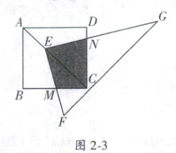 4. (山西中考)如图 2 - 3,点 $ E $ 在正方形 $ ABCD $ 的对角线 $ AC $ 上,且 $ EC = 2AE $,直角三角形 $ FEG $ 的两直角边 $ EF,EG $ 分别交 $ BC,DC $ 于点 $ M,N $.若正方形 $ ABCD $ 的边长为 $ a $,则重叠部分四边形 $ EMCN $ 的面积为 (