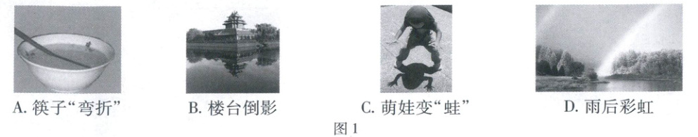 D. 雨后彩虹 光的色散现象,是光在传播过程中遇到空气中的水滴经反射、折射后产生的现象 否
