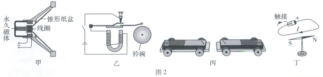 D(×)题图丁中,导线触接电池负极,导线通电,通电导体周围存在磁场,故导线下方的小磁针会发生偏转。