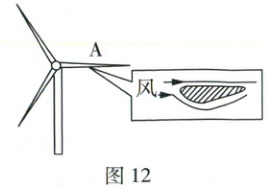 (选填“可再生”或“不可再生”)能源。风力发电机叶片横截面的设计原理如图12所示,当风正面垂直吹向静止的风力发电机的叶片时,从正面看,叶片A会顺时针