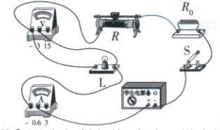 18. (7分)在“探究串联电路电压的特点”实验中,小明设计了如图18所示的电路,其中R₀为定值电阻,R为滑动变阻器,L为小灯泡。