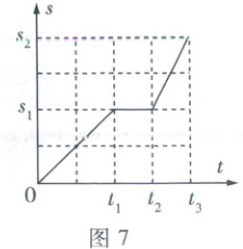 9. 一辆载货汽车的总质量为m₁,该汽车拉着货物在水平公路上沿直线行驶的s-t图像如图7所示,其中在t₁~t₂时间内汽车熄火卸去质量为m₂的货物,已知汽车行驶过程受到的阻力始终等于汽车重力的1/10。则下列说法正确的是 (