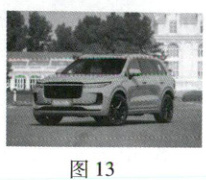 19. (6分)如图13所示是某款油电混动汽车,假如汽车的总质量为2t,四个车轮与地面接触面积为$8×10^{-2}m^{2}$,纯电模式电动机的输出功率为40kW不变。(g取10N/kg,汽油热值取$4.0×10^{7}J/kg$)求: