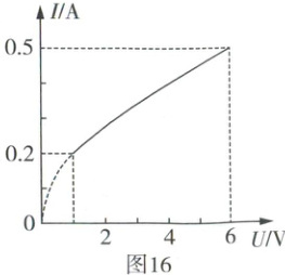 20.(6分)如图15所示,电源电压不变,滑动变阻器R标有"50Ω 1A",小灯泡L标有"6V 0.5A"字样。闭合开关,当滑片P在某一位置时,电压表示数为2V,电流表示数为0.5A,小灯泡L的I-U图像如图16所示。