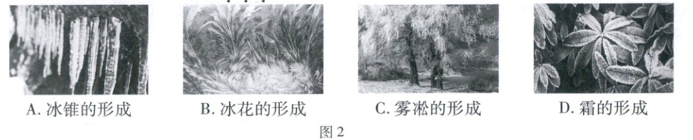 4. 图2中的四幅图,反映的物态变化