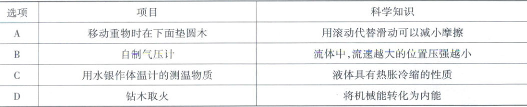 2. 下表所列项目与应用的科学知识不相符的是 (
