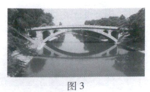 5. 赵州桥是世界上现存最早、保存最完整的古代单孔敞肩石拱桥。如图3所示,在平静的水面上,桥与它的倒影相映成趣。以下的像与“倒影”的形成原理相同的是 (