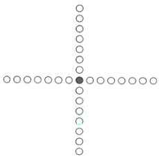 全校做早操的时候,小明班级站队站成了下图,小明就站在中心圆点处。小明发现,无论从哪个方向数过来,他都是第 4 个。那么共有多少人在站队?