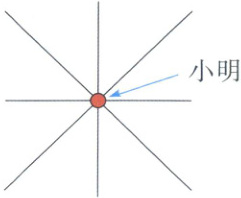 如上图所示,小明的前、后、左、右、左前、右前、左后、右后八个方向上各有:4−1=3(人),则站队的人共有:3×8+1=25(人)。