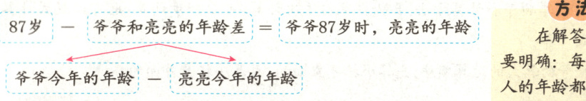 87岁 − 爷爷和亮亮的年龄差 = 爷爷87岁时,亮亮的年龄