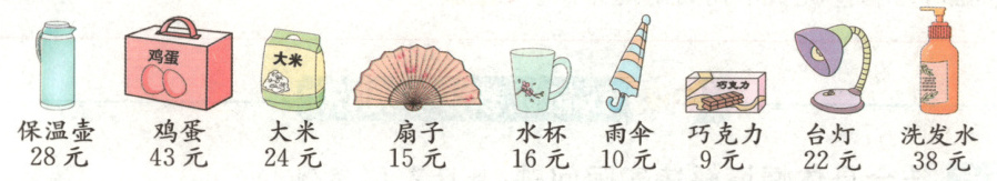 (2)如果妈妈用90元购买了三件商品后还剩50多元,那么你知道妈妈可能买了哪些商品吗?