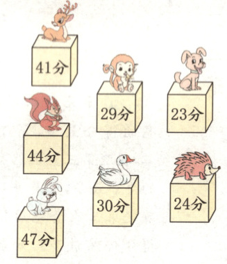 套圈游戏 活动探究 她可能套中了小狗和猴子,或小狗和鸭子,或小狗和鹿,或小狗和松鼠,或刺猬和猴子,或刺猬和鸭子,或刺猬和鹿,或刺猬和松鼠,或猴子和鸭子。