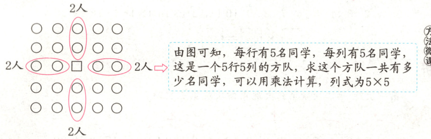 4 培优题 同学们排成方队进行体操表演,萱萱的前、后、左、右都有2名同学。这个方队一共有多少名同学?