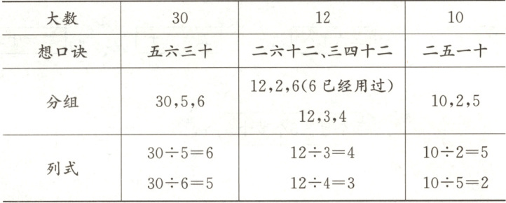 解答 30÷5 = 6 或 30÷6 = 5 12÷3 = 4 或 12÷4 = 3