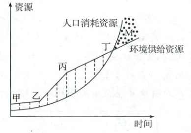 | D | 资源环境承载力定义为人口数量与资源供给的平衡点,丁处的人口数量与资源环境承载力达到平衡,表示人口数量达到资源环境承载力 | 正确 |