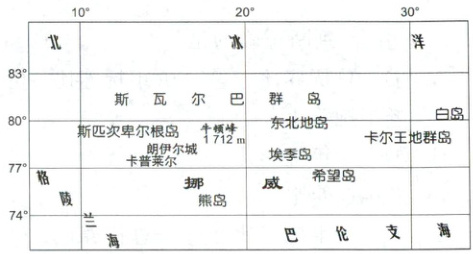 情境创新(2025 广东东莞期中)坐落在挪威斯瓦尔巴群岛上朗伊尔城(78°13'N,15°33'E)是全世界最北端的可达居住地区,也是世界上唯一禁止死亡的城市。除非猝死,无人有权死在这里。重症病人必须送回挪威本土的医院。该地气候寒冷、土壤永冻,每年有 3 个月的极夜时间。在过去 50 年,该地气温上升了 4℃。全球气候变暖正在让这座世外桃源般的城市氛围被打破。下图为该城所在位置。据此完成 5~7 题。