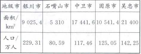 材料一 下表为宁夏回族自治区面积、人口统计表(数据截至 2019 年 12 月)。