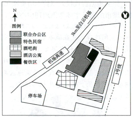 (2025四川成都期末)位于广州市白云区人和镇的凤和村是拥有300多年历史的古村落,至今仍保留一些岭南传统民居。改革开放以来该村空心化严重,宅基地闲置率高。2017年借力乡村振兴政策建设全国首个空港文旅特色小镇,通过合作租赁的方式“微改造”空置的旧房屋,利用青砖元素,以古今融合的方式延续传统风貌。下图示意该改造项目的功能分区规划。据此完成1~2题。
