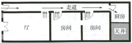 9. 图中走道大多布置于竹筒屋平面的一侧,除了具有连接房间使用空间功能外,其还具有最直接功能是(