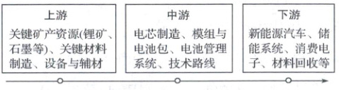 (2025山东聊城期末)宁德时代新能源科技公司在动力电池和储能系统两大领域均占据了全球最大的市场份额。产品生产流程模块化,从接单到交付通常在3个月以内。2013年宁德时代携手多家相关企业,在青海西宁市布局上游产业。2023年2月,宁德时代在“汽车之都”底特律投资磷酸铁锂动力电池工厂。下图为动力电池产业链示意图。据此完成12~14题。