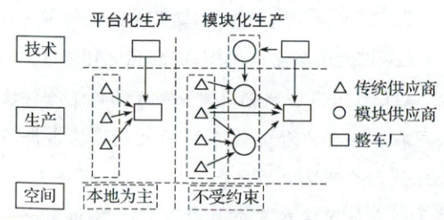 15. 与平台化生产相比,模块化生产(