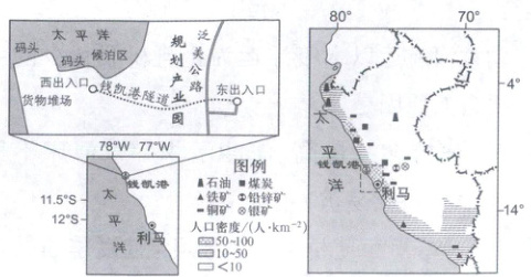 (高频考点(2025 河南南阳期末)钱凯港位于秘鲁首都利马以北约 78 km,地处南美洲太平洋沿岸,属天然深水良港(最大水深 17.8 m)。2024 年底以来,往返于中国和南美洲各国的货轮不再绕道墨西哥、巴拿马拆解分装货物,可实现直达通航,货运行程由 40 多天减少到 23 天。下图为钱凯港的地理位置及周边重要地理事物分布图。据此完成 6~7 题。