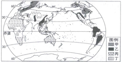 11.D 根据所学知识可知,世界上最严重的三大酸雨区分别是西北欧、北美和中国,所以图中表示酸雨问题的是甲,A正确。根据所学知识可知,乙表示水土流失,丙表示土壤侵蚀问题,丁表示原始森林破坏,B、C、D错误。