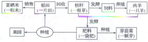 高频考点(2025 江苏苏州期末)近年来,苏州太仓东林村探索发展生态循环农业新路径。目前,该村已经形成了以“一片田、一根草、一只羊、一袋肥、一粒米、一棵芽”为核心的生态循环农业高质量发展模式。下图为东林村生态循环农业发展模式示意图。据此完成 8~9 题。