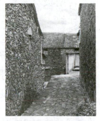 (2025 福建三明期末)乌石村位于浙江省磐安县,当地分布着大量火山喷发遗留的黑石(乌石),该村古建筑大多以黑石(乌石)砌墙。2003 年浙江启动“千村示范、万村整治”工程,乌石村将 470 多间乌石老屋完整保留,由村干部带头发展农家乐,走上乡村振兴发展之路。右图为乌石村古建筑景观图。据此完成 6~7 题。
