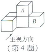 4. 如图是由5个完全相同的小正方体搭成的几何体,若将小正方体A放置到小正方体B的正上方,则它的三视图的变化情况是(