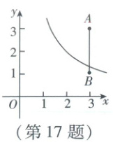 17. 新课标 开放性试题 如图,已知点$A(3,3),B(3,1)$,反比例函数$y = \frac{k}{x}(k\neq0)$图象的一支与线段$AB$有交点,写出一个符合条件的$k$的整数值: