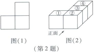 2. 用5个大小相同的小正方体搭一个几何体,其主视图如图(1)所示,其中4个小正方体按图(2)方式摆放,则最后一个小正方体不能放在(