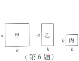 6. 如图,有甲、乙、丙三种矩形纸片若干张($a > b$)。若用这三种纸片紧密拼接成一个面积为$a^{2} + 3ab + 2b^{2}$的矩形,则这个矩形的长和宽分别是(