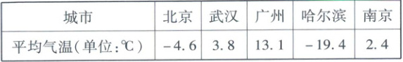 1. 下表是我国五个城市某年1月份的平均气温,温差最大的两个城市是(