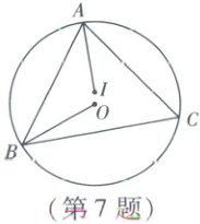 7. 如图,点$O$,$I$分别是$\triangle ABC$的外心和内心,连接$OB$,$IA$。若$\angle OBC = 20^{\circ}$,则$\angle IAB =$(