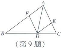 11. 如图,$DE$是$\triangle ABC$的中位线,点$F$为$DE$的中点,连接$AF$并延长交$BC$于点$G$,若$\triangle EFG$的面积为2,则$\triangle ABC$的面积为(