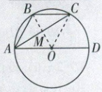 ∴∠BOA = 2∠BCA = 60°(依据:圆周角定理).在Rt△AOM中,OA = $\frac{1}{2}$AD = 4,