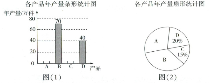 ∴调整前 A 产品的年产量为 200 - 70 - 30 - 40 = 60(万件).