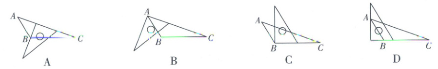 2. 利用一块含30°角的透明直角三角板过点A作△ABC的边BC的垂线,下列三角板摆放的位置正确的是 (