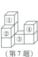 7. 如图是由8个大小相同的小正方体组成的几何体,若从标号为①②③④的小正方体中取走一个,使新几何体的左视图和俯视图都不发生变化,则应取走 (