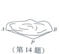 14. 如图,为估计池塘两岸A,B两点间的距离,小奇在池塘一侧选取了一点P,分别测得PA = 7 m,PB = 5 m,若A,B间的距离长度为偶数,那么A,B间的最大距离是