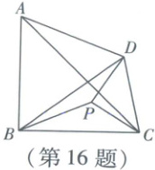 16. 如图,在△ABC中,∠ABC = 90°,AB = BC = 5,P是线段BC外一动点,BP = 3,连接CP,将线段CP绕点P逆时针旋转90°得到线段DP,接BD,CD,AD,则BD长度的最大值为